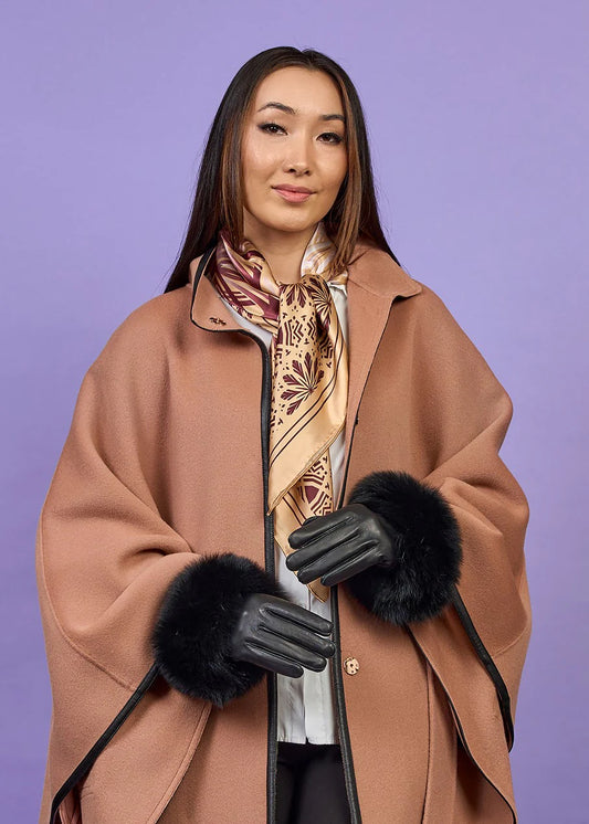 Lady Auto Fingerless Leather Cashmere Lined Gloves