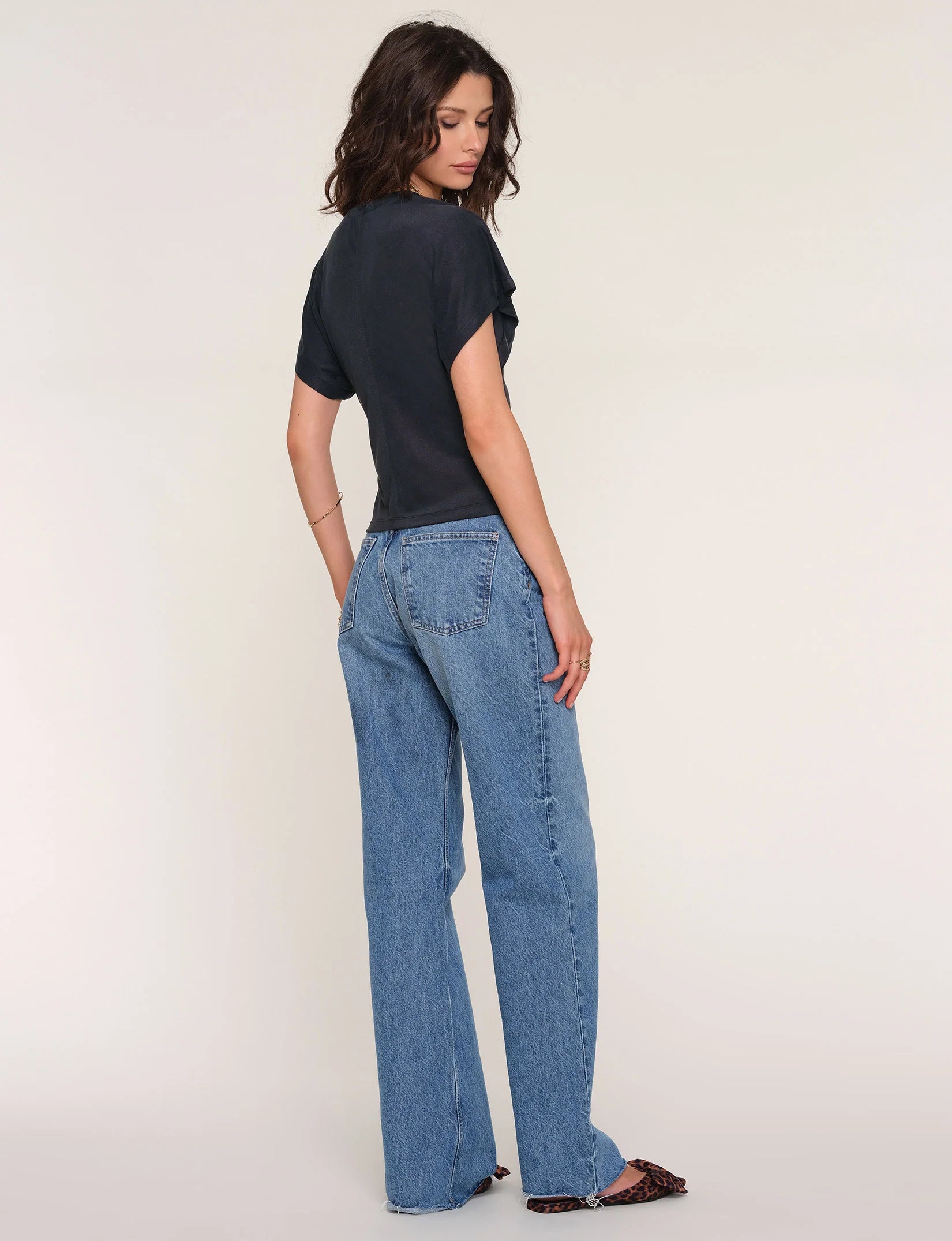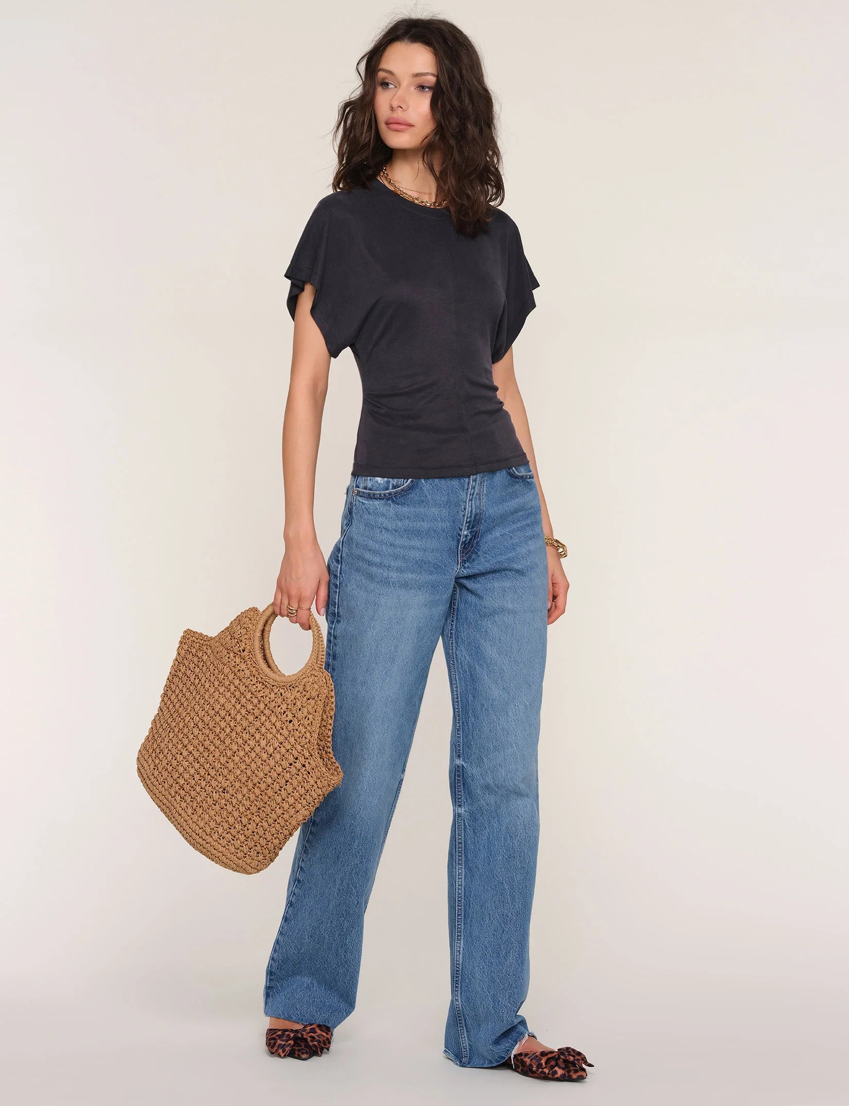 The Ayden Top is made from a super soft, sand washed jersey. It has a crew neck, flutter sleeves and a pinched waist, making it super flattering. Everyone will compliment this updated essential
