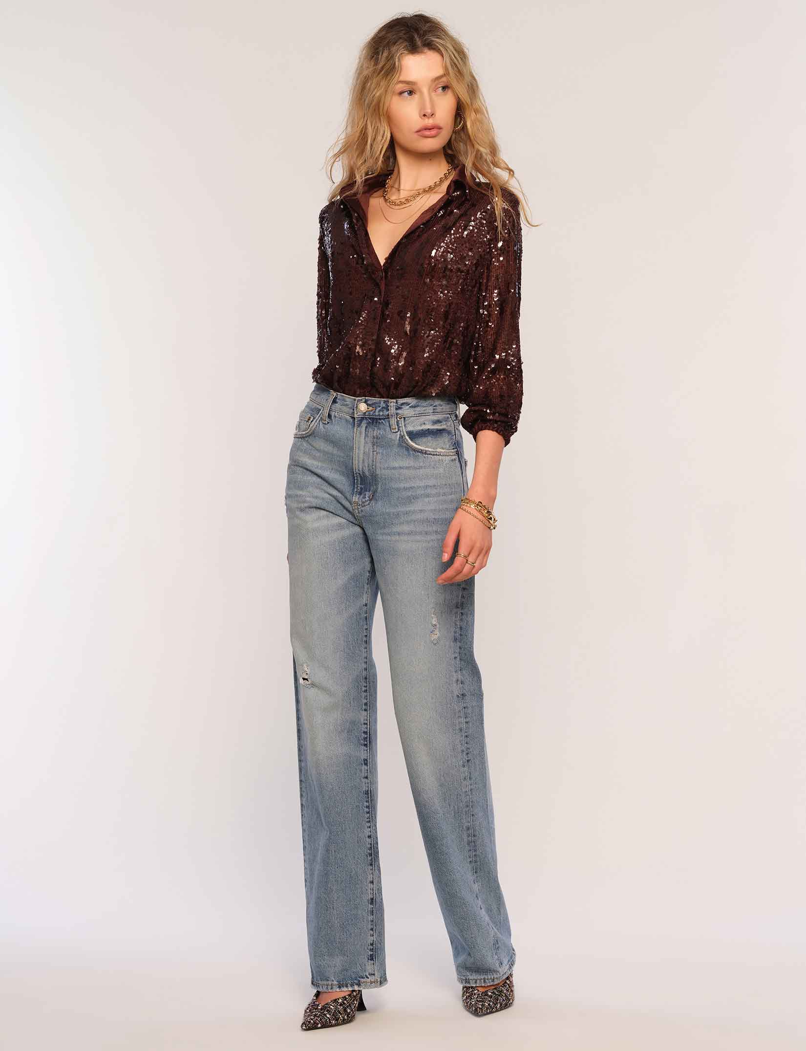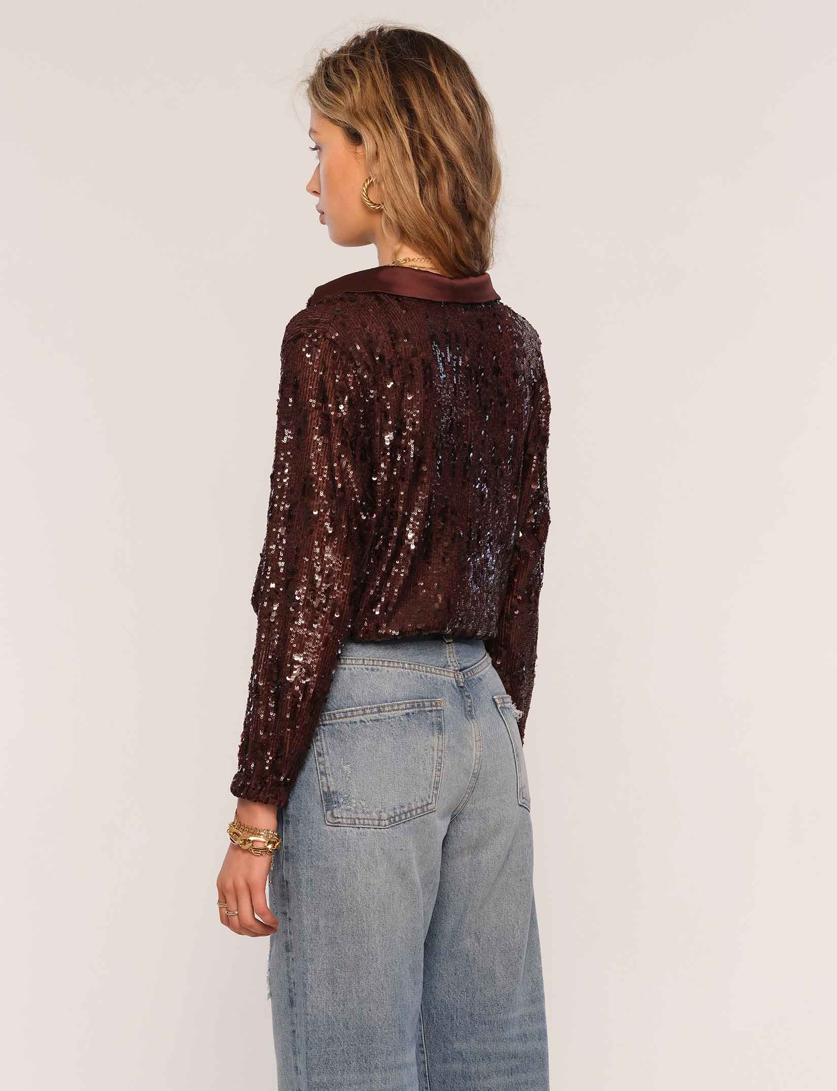The Beatrix Bodysuit is made from our drapey sequin with a relaxed fit. It has a full-coverage bottom made from our soft rib knit that closes with snaps for an adjustable fit. Pair with jeans or a skirt and you've got the perfect desk-to-drinks outfit