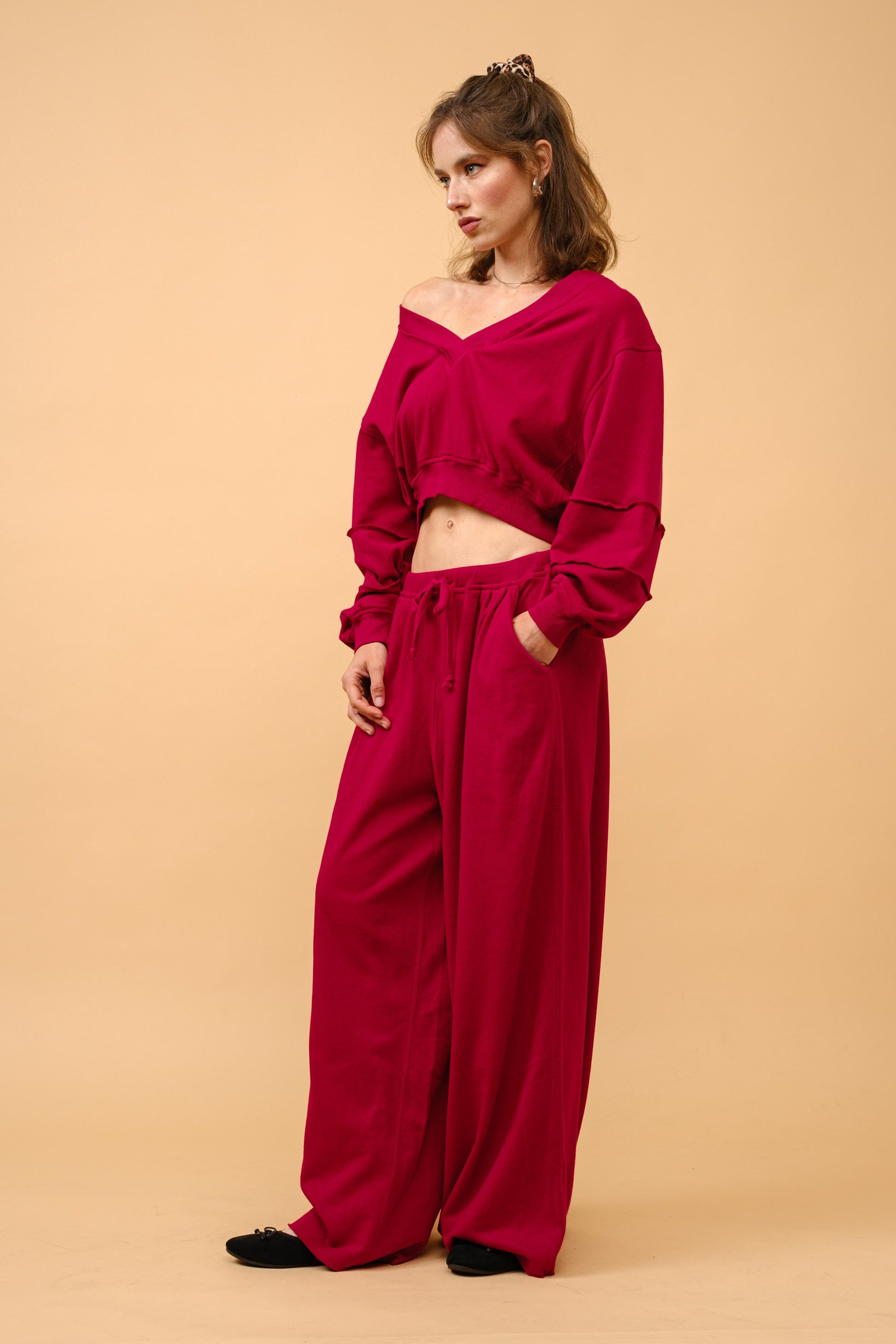 The French Terry Sweatshirt is the ideal companion to our Baggy Draw String Sweats. Crafted from a soft blend of 60% cotton and 40% polyester, this top offers a cozy, relaxed fit perfect for casual wear with a gorgeous pop of color.