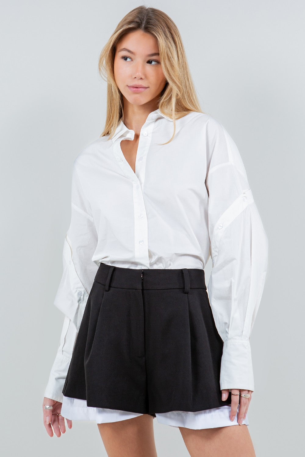 Elevate your wardrobe with the Button Detailed Sleeves Shirt. This refined shirt features classic tailoring with button accents along the sleeves, adding a stylish and sophisticated touch to a timeless silhouette. Perfect for both casual and polished outfits.