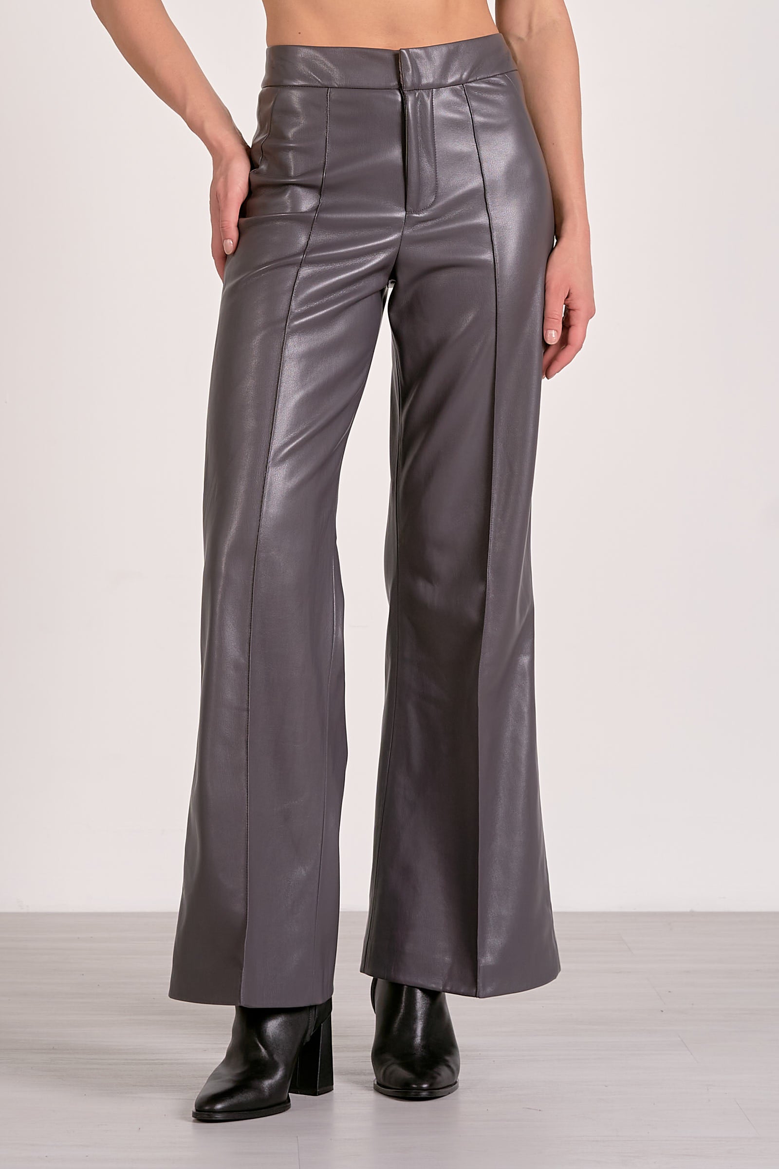 Soft, sleek, and impossibly cool - those pants are redefining vegan leather. Designed in a rich charcoal grey, these high-waisted stunners combine elevated edge with all-day comfort. The fabric is exceptionally soft with a buttery feel and just the right amount of structure, making them as wearable as they are chic. The wide-leg silhouette creates a flattering drape that elongates the legs, while the tailored waist keeps the look polished. Whether paired with a tucked-in blouse, oversized sweater, or cropped jacket, it is the statement piece your wardrobe’s been waiting for