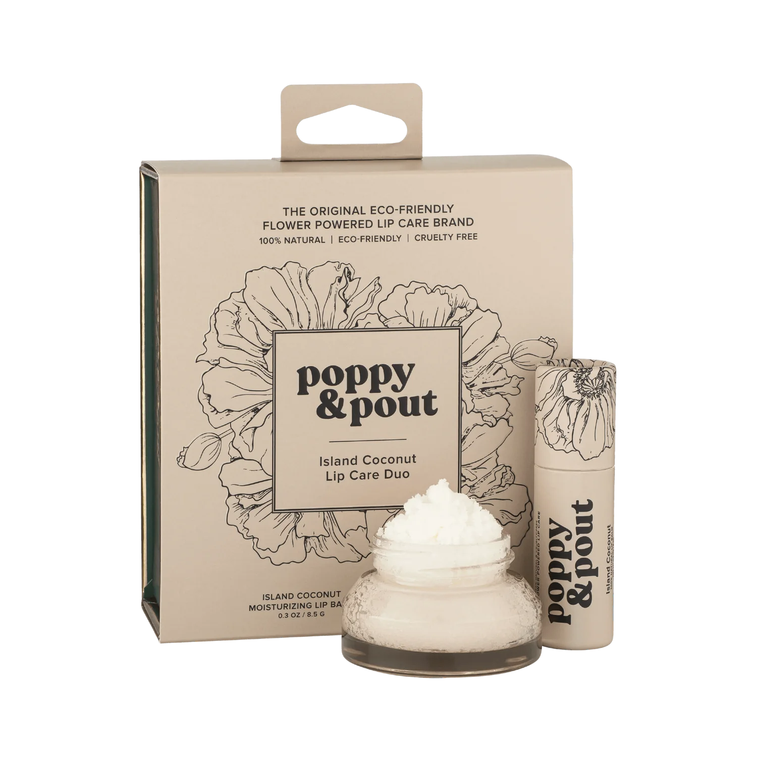 Ready for a getaway? Poppy & Pout's best selling Island Coconut will take you straight to the beach. Both the Lip Scrub and Lip Balm are made with 100% natural ingredients and will leave your pout feeling soft and refreshed.