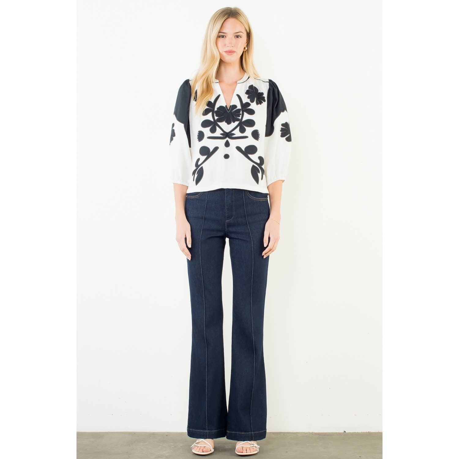 Elevate your everyday style with our Long Sleeve Pattern Detail Top, the perfect blend of comfort and standout design. Crafted from a soft, breathable fabric, this versatile piece features eye-catching pattern details that add just the right amount of personality without overwhelming your look. The long sleeves offer lightweight coverage, making it ideal for layering or wearing on its own through changing seasons. Designed with a flattering, easy fit, it drapes beautifully for a polished yet relaxed feel. Pair it with your favorite denim for an effortless daytime outfit, or tuck it into tailored trousers for a chic, elevated ensemble.
