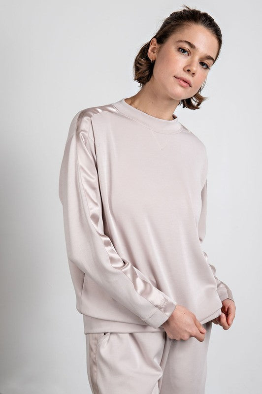 Add a touch of elegance to your wardrobe with the Long Sleeve Top with Satin Side Detail. This sophisticated top features sleek satin accents along the sides, offering a stylish contrast to the classic long sleeve design. Perfect for both day-to-night looks, it combines comfort with a refined touch