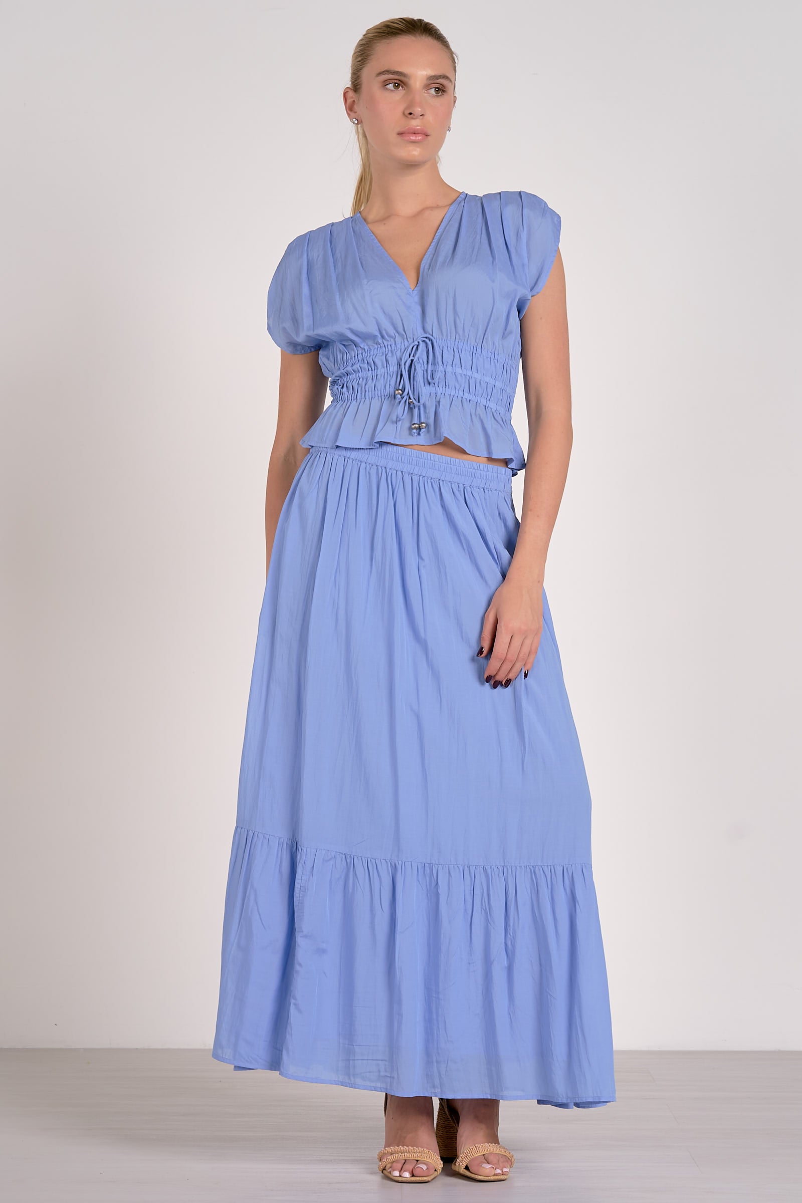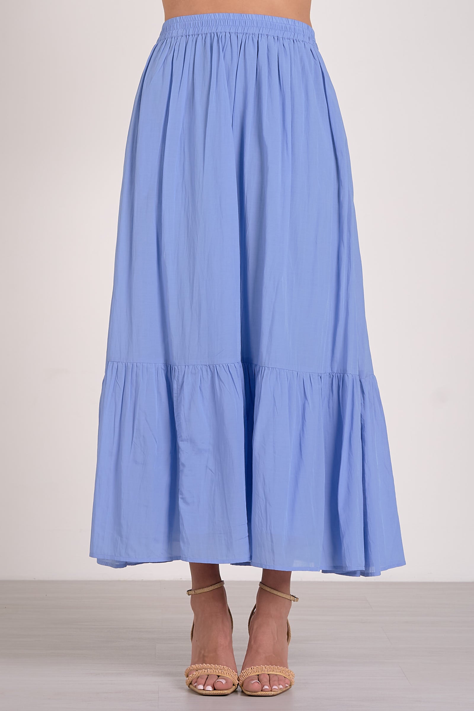 This Midi Tiered Skirt is the epitome of graceful style and effortless elegance. Featuring a flattering midi length and soft, flowing tiers, this skirt creates a beautiful, feminine silhouette that moves with every step. The lightweight fabric adds to its airy feel, making it perfect for both casual and dressier occasions. Pair it with a tucked-in blouse, a simple tee, or a cropped top for a chic, on-trend look. Whether you're headed to brunch, a day out, or a special event, this versatile skirt adds a touch of charm and sophistication to any outfit. Matches perfectly with our Tie up Ruffle Top.