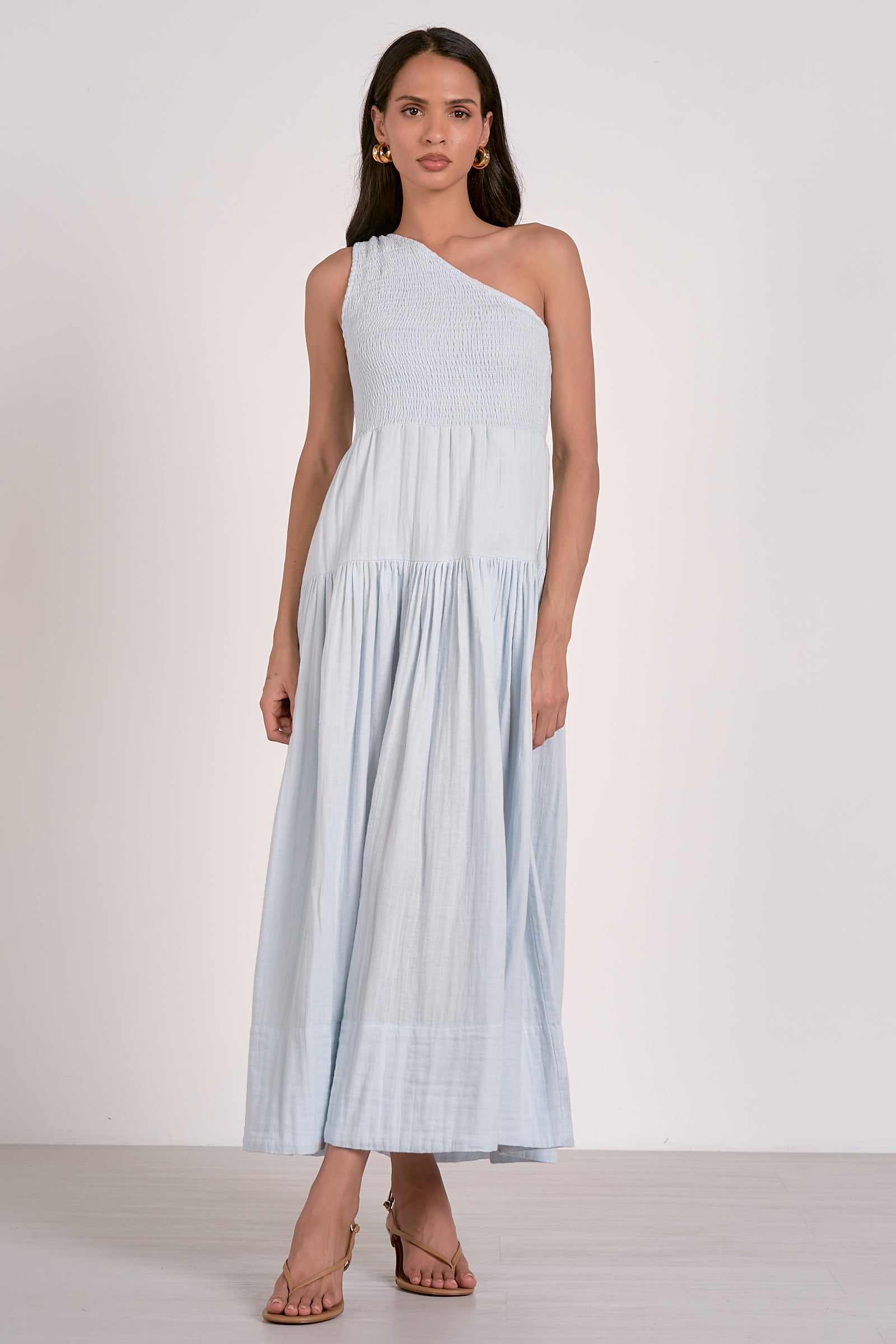 This One Shoulder Cotton Maxi Dress is the perfect blend of comfort and effortless elegance. Crafted from soft, breathable cotton, this dress offers a relaxed yet flattering fit, making it ideal for warm-weather days. The asymmetrical one-shoulder design adds a modern, chic touch, while the flowing maxi silhouette ensures you move with ease and grace. Whether you’re heading to a beachside getaway, a garden party, or a casual dinner, this versatile dress can be dressed up with accessories or kept casual for a laid-back look. A must-have staple for your summer wardrobe that combines style and comfort in one