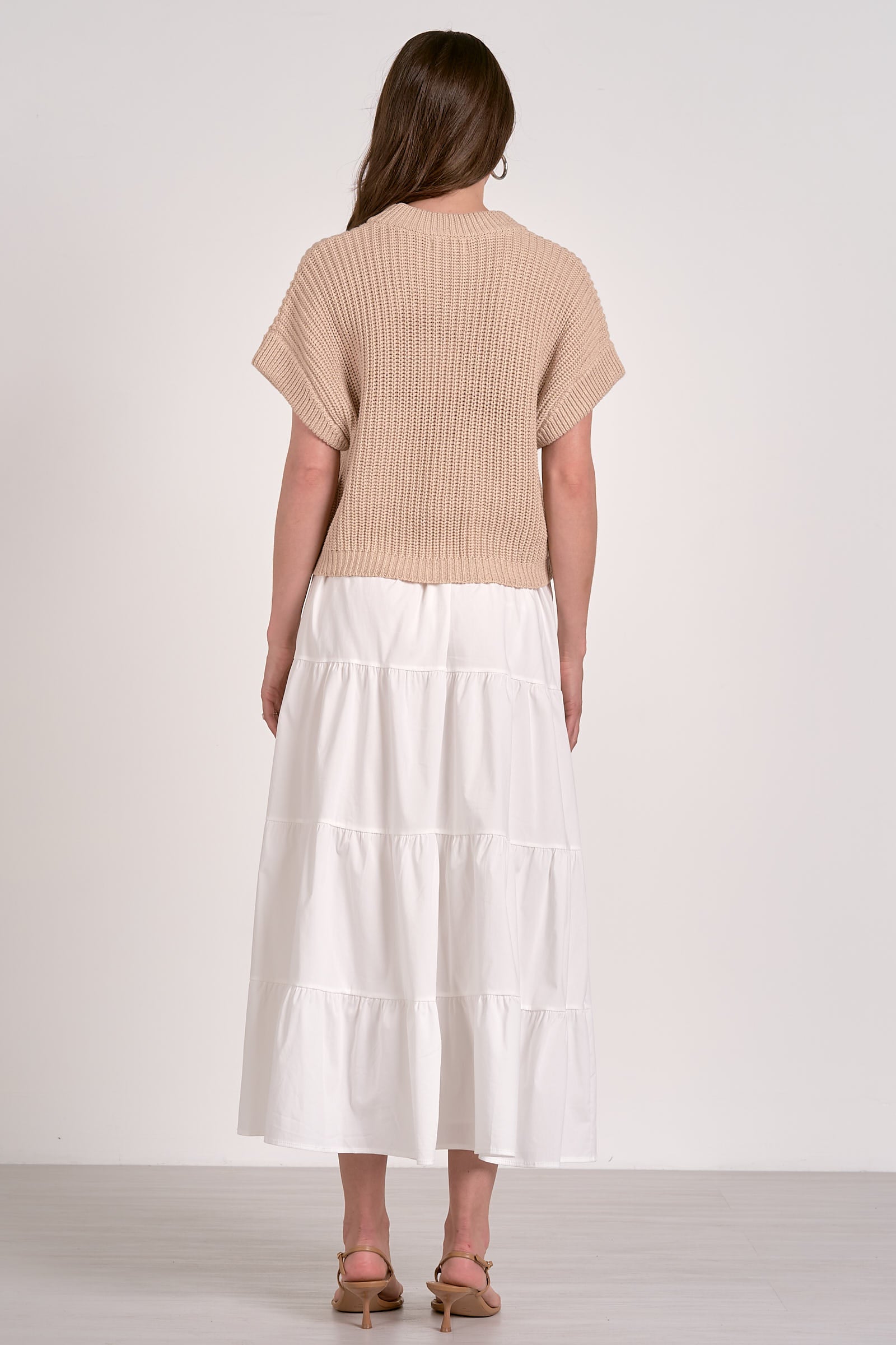 The Opal Dress is a modern blend of comfort and style. Featuring a soft knit sweater top and a flowy tiered midi skirt, this piece combines structure with elegance. Its relaxed silhouette makes it perfect for casual outings or easy days, while the contrasting textures add a unique and stylish touch