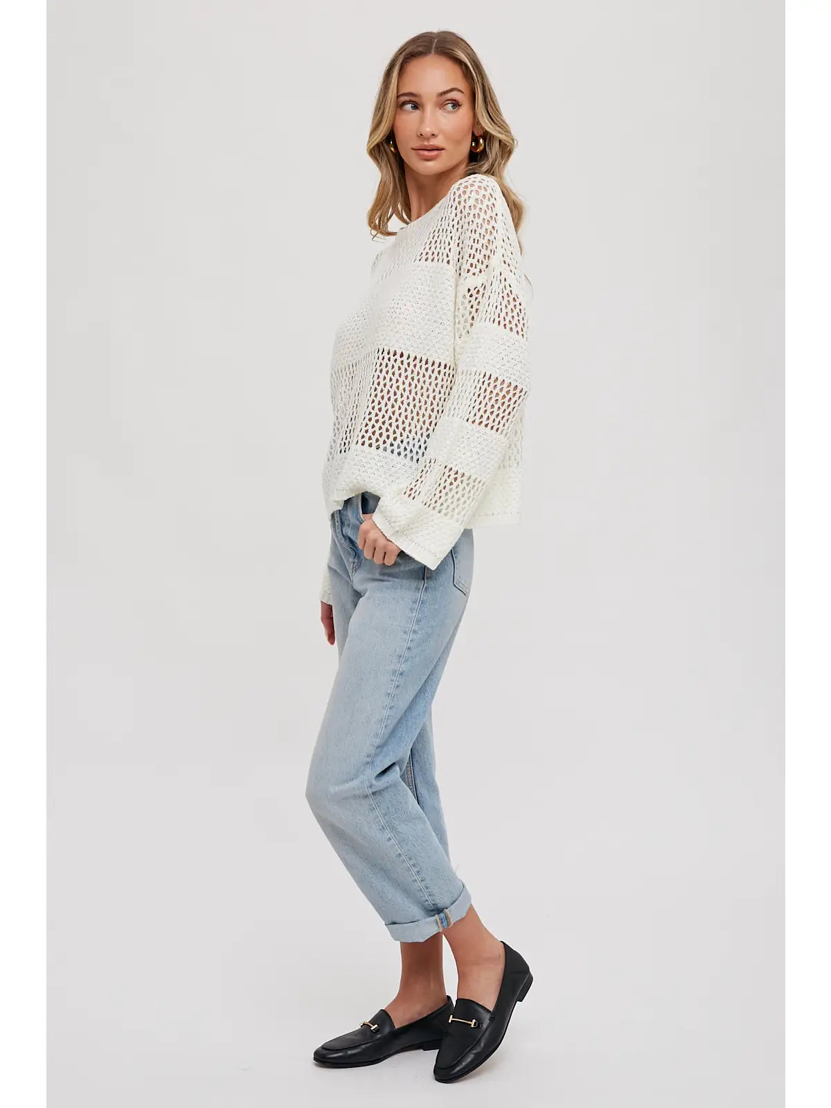 Stay stylish and cozy with the Open-Knit Sweater Pullover. This lightweight sweater features an airy open-knit design, offering a relaxed fit and a touch of texture. Perfect for layering over your favorite tops for a chic, casual look