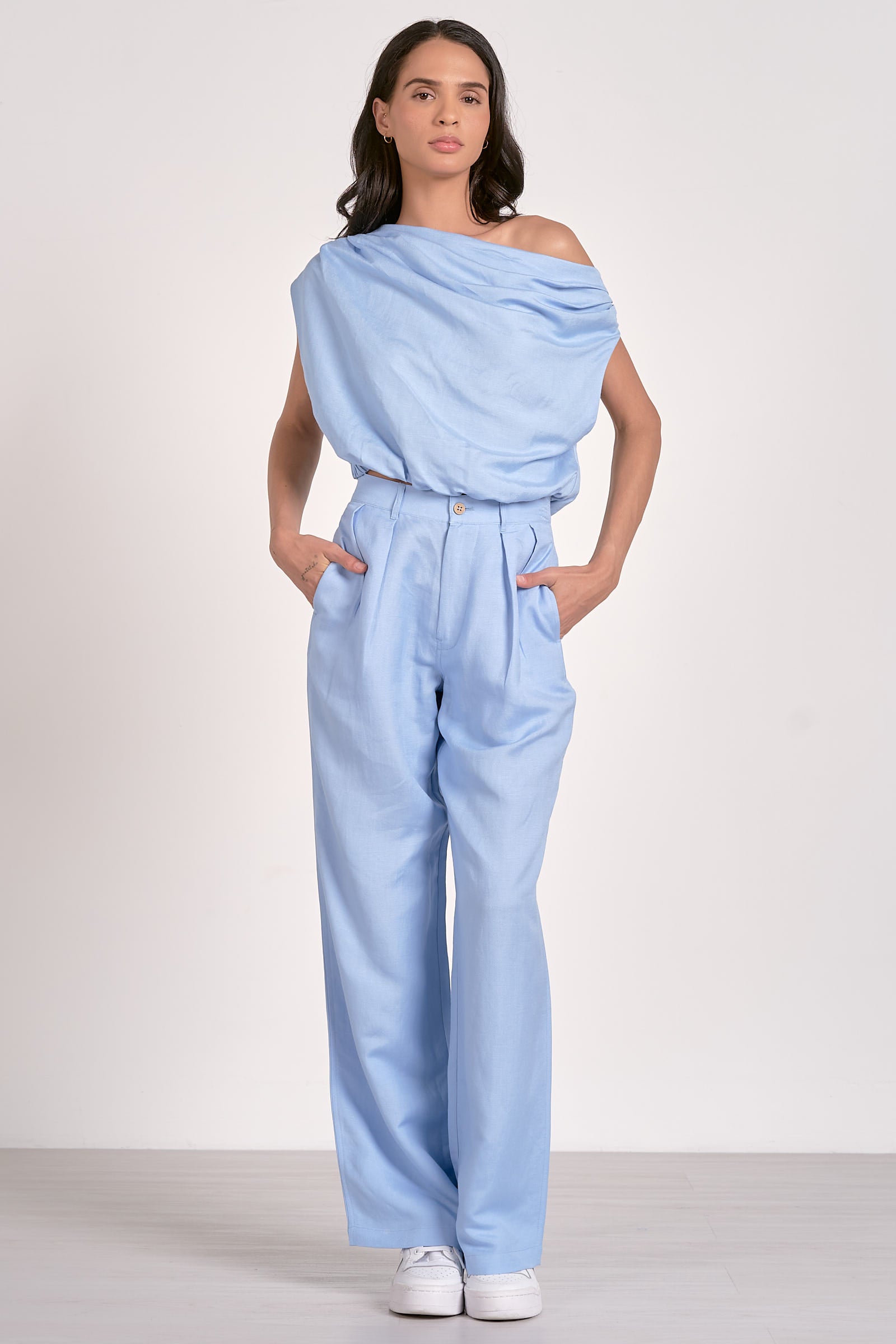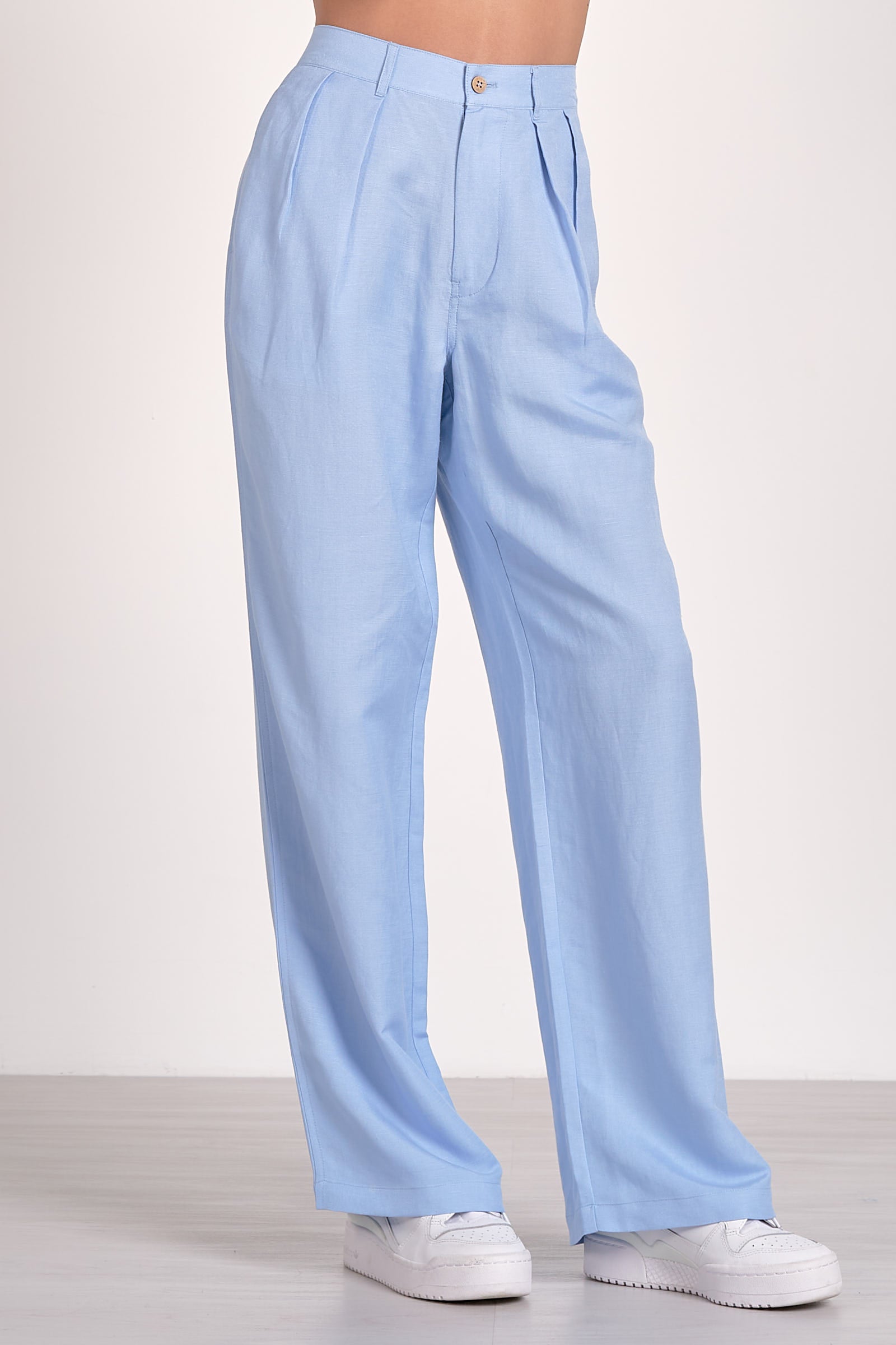 Refresh your wardrobe with our Pleated Front Pants — a perfect balance of relaxed charm and polished ease. Crafted from a breathable linen-blend fabric in a dreamy sky blue, these high-waisted pants feature soft pleats, a tailored waistband, and a wide-leg silhouette that flatters every figure. The lightweight feel makes them a go-to for warm days, while the classic button closure and versatile color allow for easy styling from desk to dinner. Pair them with a crop top and sneakers for casual days or elevate with heels and a blouse for a crisp, sophisticated look
