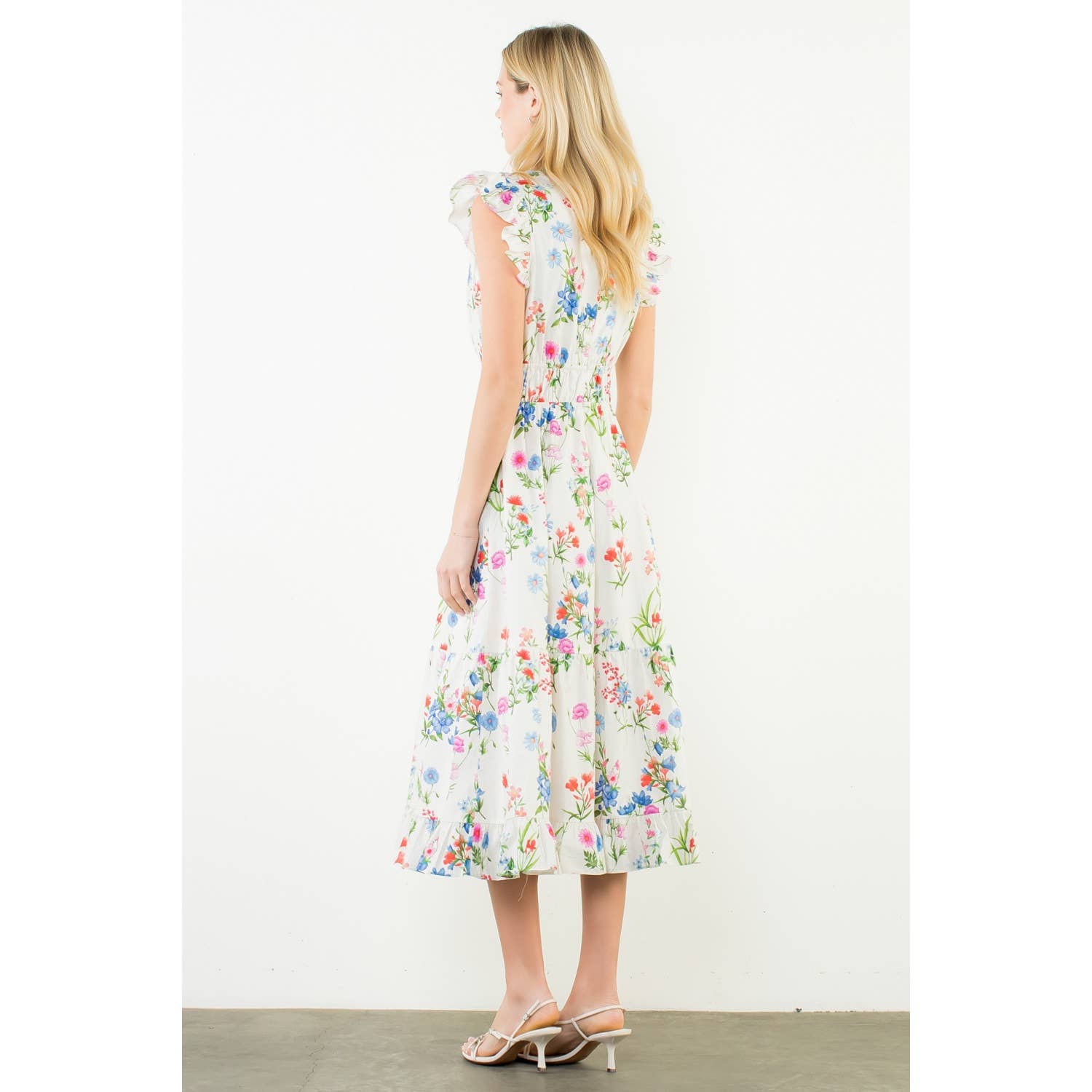 Feminine, flirty, and effortlessly charming our Ruffle Sleeves Floral Print Tiered Dress is made for sunshine-filled days and sweet summer moments. Featuring a delicate floral print throughout, this dress brings a fresh, romantic feel to your wardrobe. The soft ruffle sleeves add a playful touch, while the tiered silhouette creates beautiful movement and a flattering, flowy fit. Lightweight and breathable, it’s designed for all-day comfort without sacrificing style. Whether you're headed to brunch, a garden party, or a weekend getaway, this dress is an easy choice for looking put-together and polished.