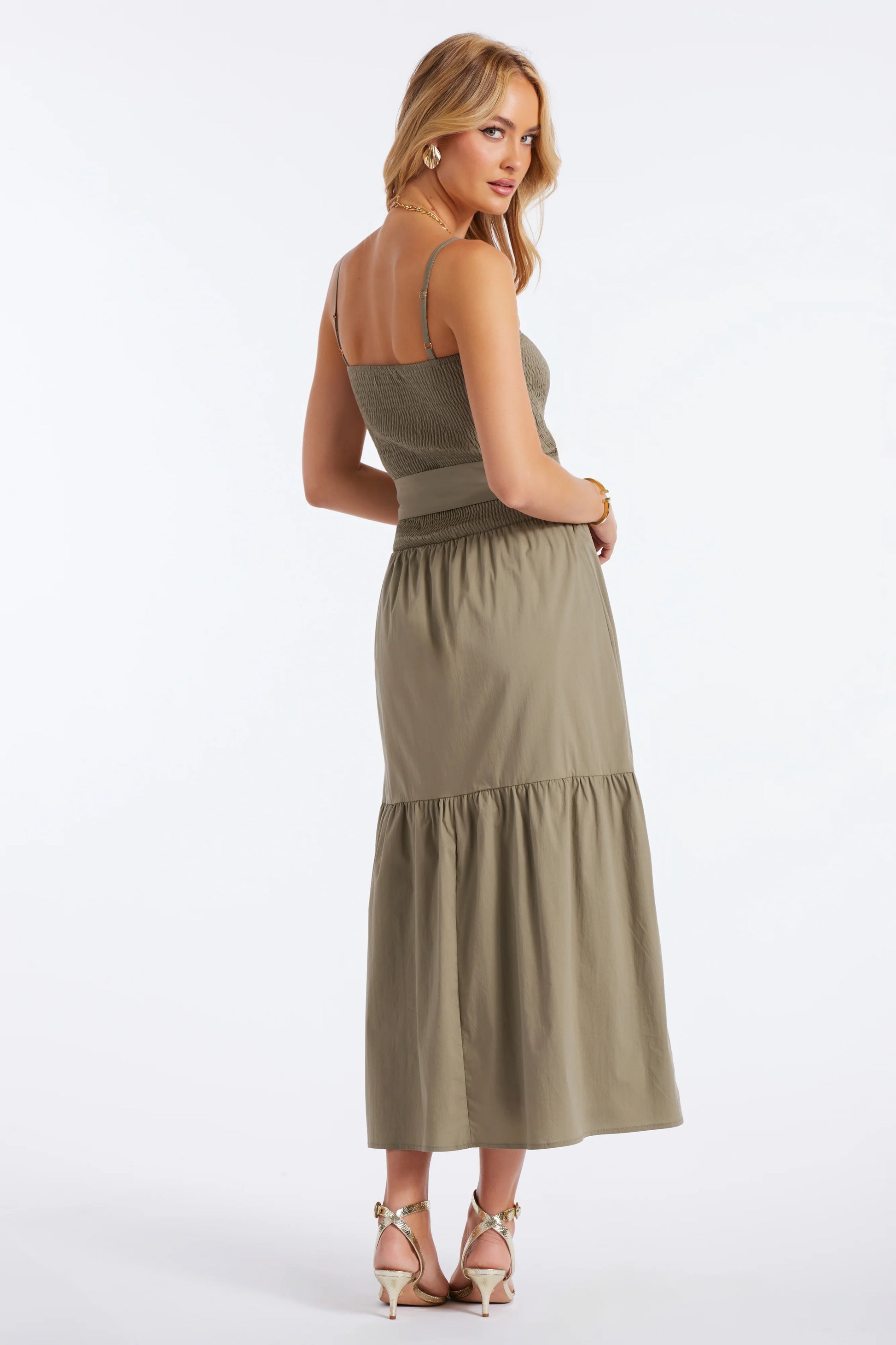 Breezy, flattering, and timelessly stylish — our Stella Smock Tiered Dress is the perfect blend of comfort and sophistication. Designed with a relaxed smock silhouette, this dress gently skims the body for an easy, breathable fit. The adjustable belt cinches at the waist to highlight your shape, while the midi length adds a touch of understated elegance