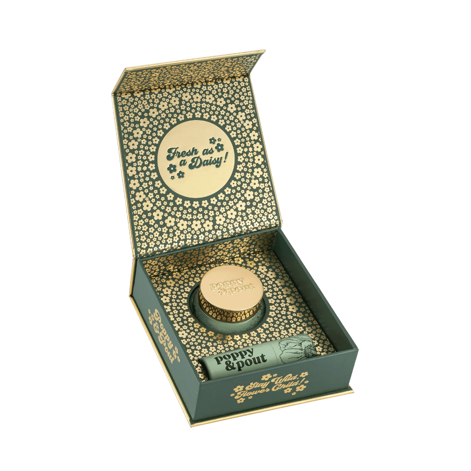 Step up your lip care routine with our Lip Care Duo! This gift set includes one matching lip balm and lip scrub in a beautiful (newly updated!) green and gold, recyclable gift box.