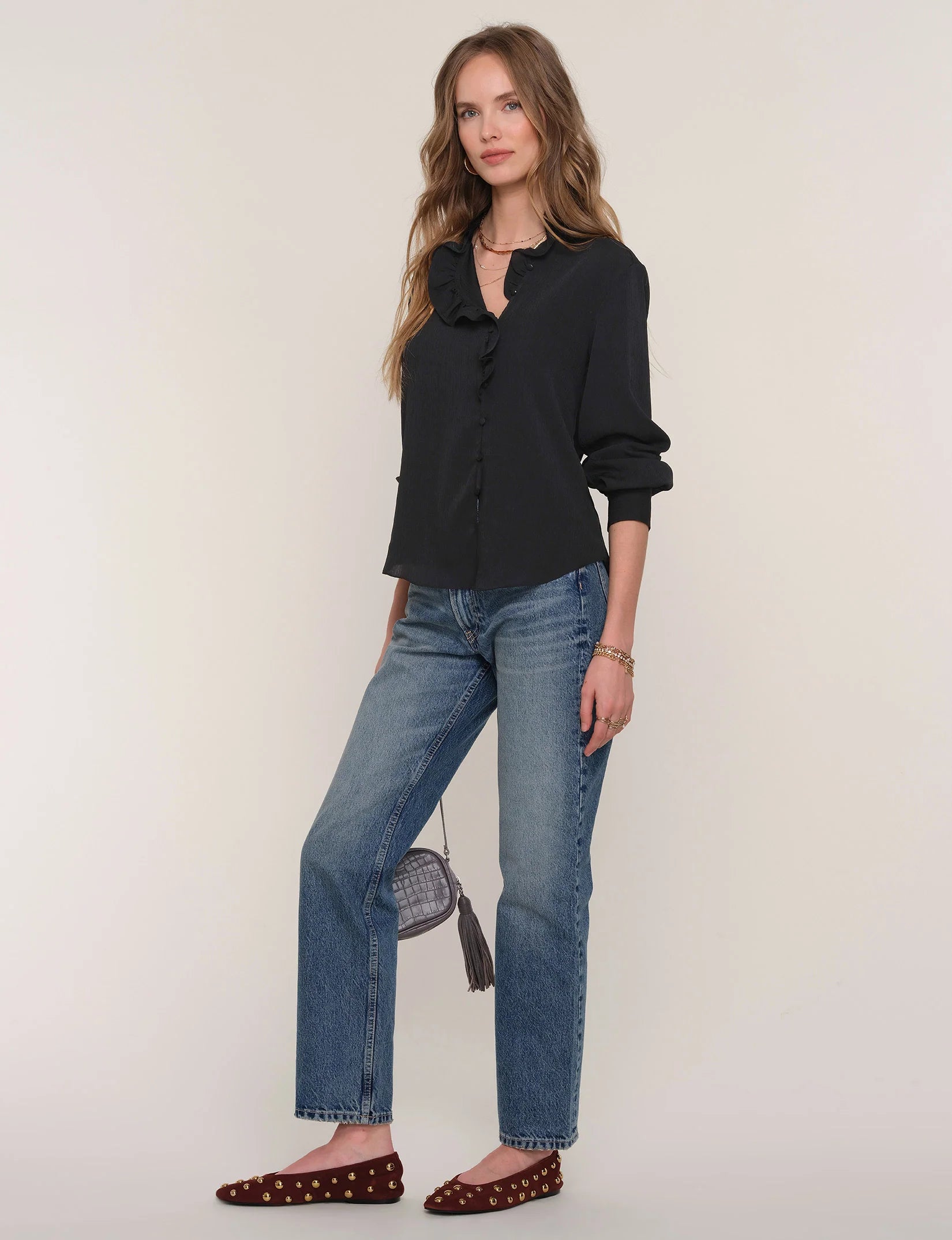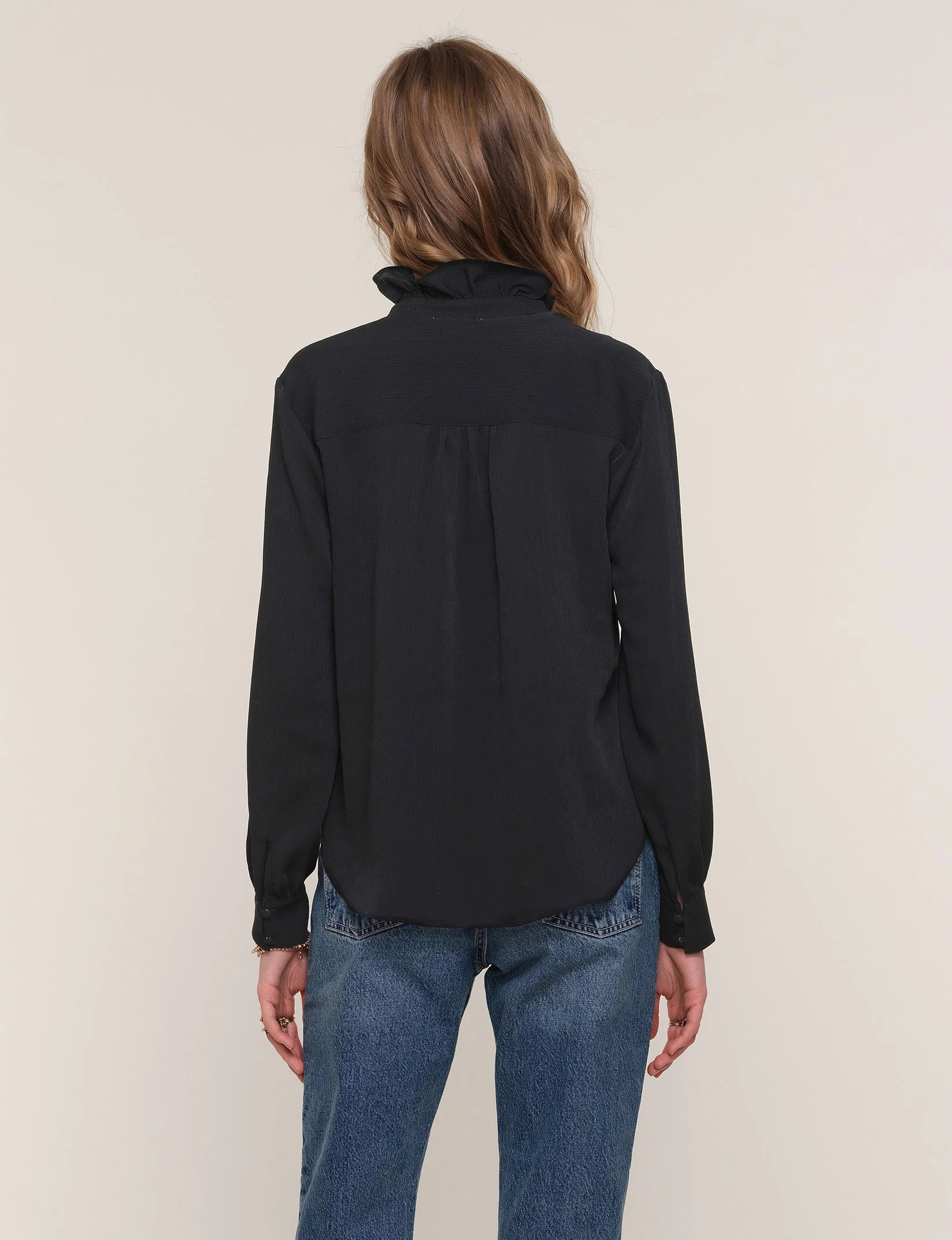 Effortlessly elegant, the Taylor Shirt is crafted from a lightweight draped georgette, offering fluid movement and all-day comfort. A modern twist on the classic button-down, it features a relaxed fit and delicate ruffle detailing at the neckline for a touch of soft femininity. Perfect for layering or wearing on its own, this versatile piece is ideal for transitional seasons—pair it with denim, tailored trousers, or under a blazer for an elevated everyday look