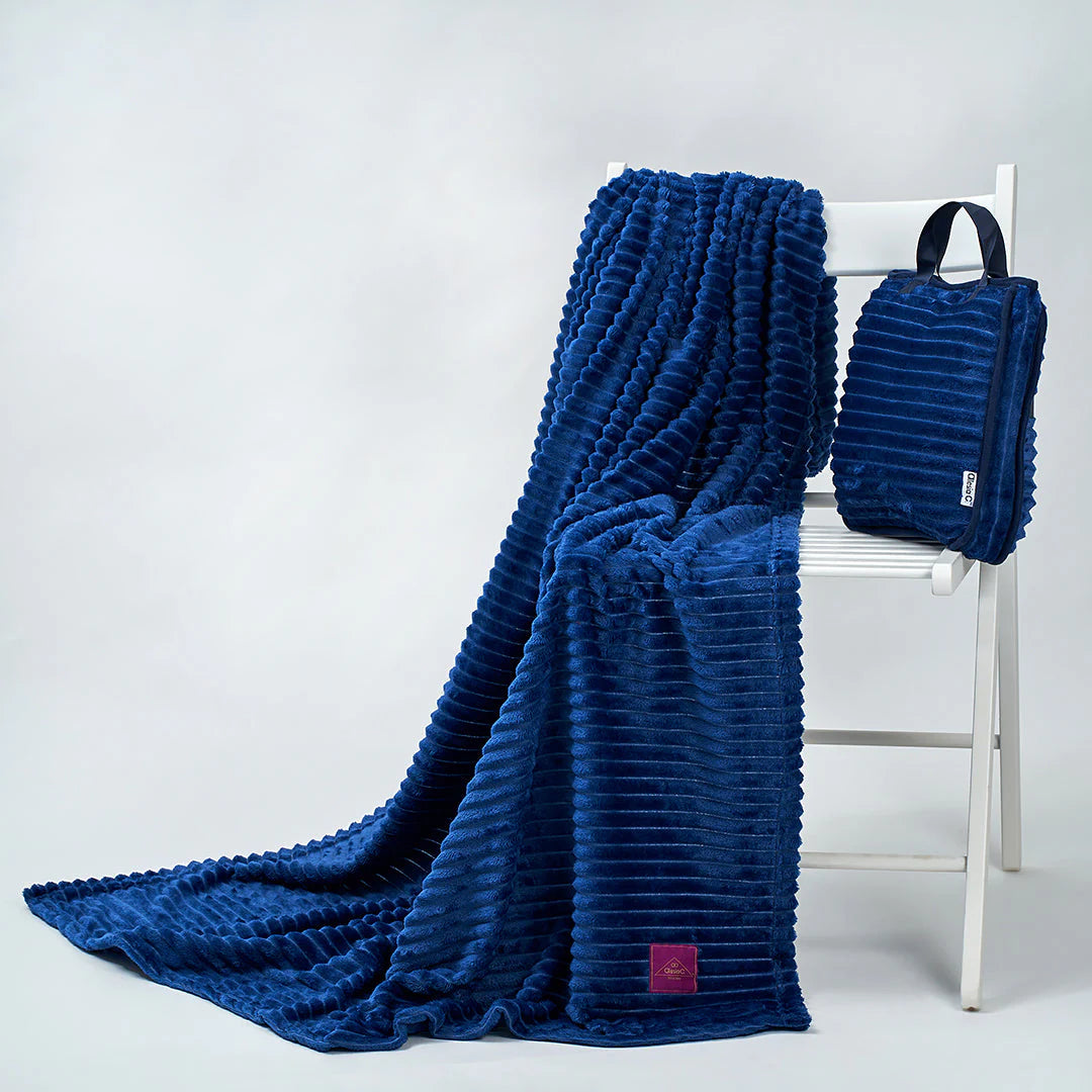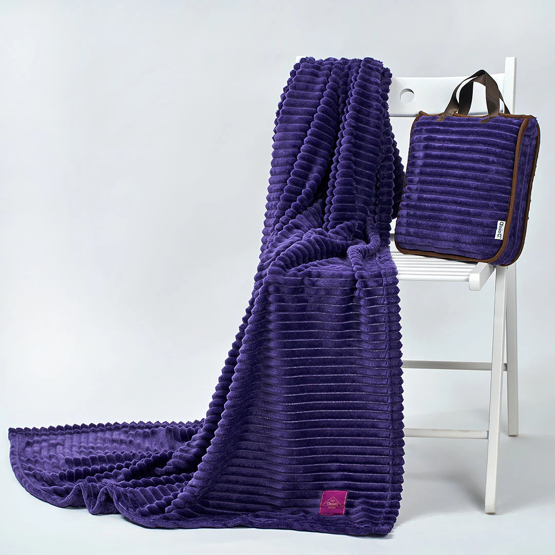 Travel Cozy 4-in-1 Stripe Luxury Velour Blanket - Pillow