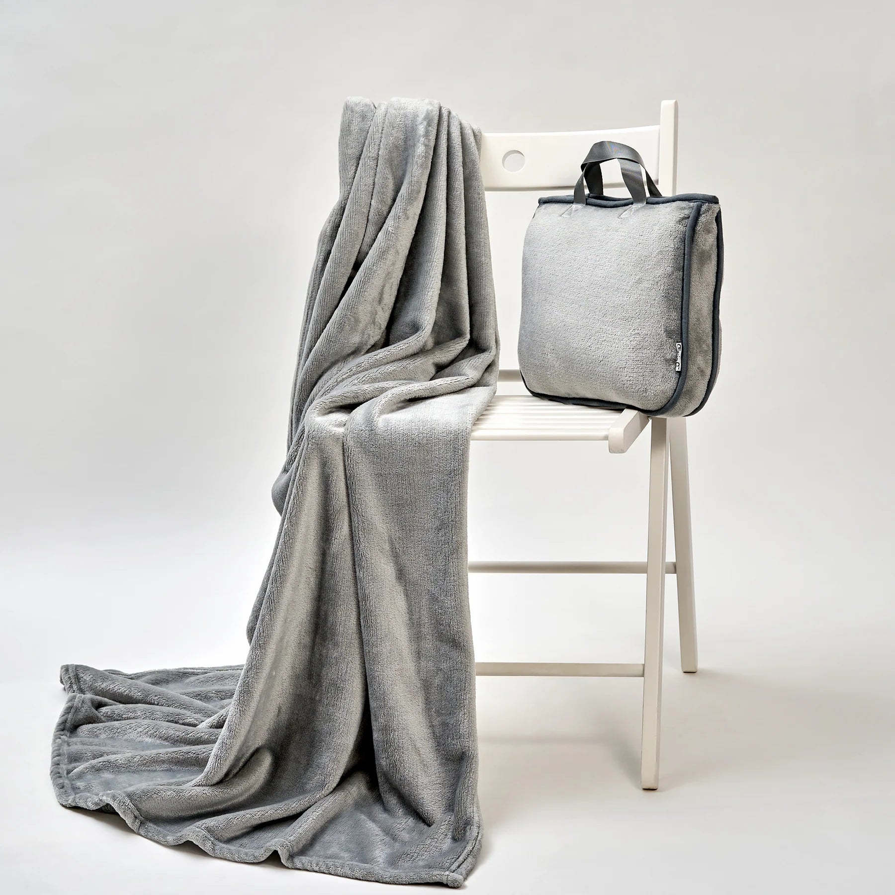 Travel Cozy 4-in-1 Solid Luxury Velour Blanket - Pillow