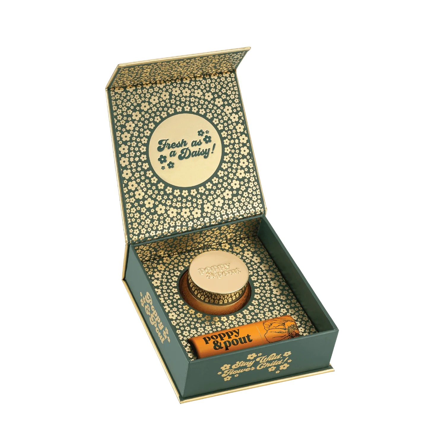 Step up your lip care routine with our Lip Care Duo! This gift set includes one matching lip balm and lip scrub in a beautiful (newly updated!) green and gold, recyclable gift box.